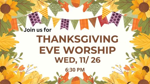 Come together with our church family for Thanksgiving Eve Worship — a time to pause, reflect, and give thanks to God for all His gifts.