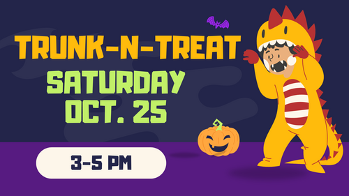 Bring your family and friends for a safe and fun night of trick-or-treating right from the trunks of decorated cars! Kids (and adults!) can dress up in their favorite costumes and collect candy while enjoying fellowship, games, and fall fun.
